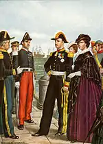 Those events at last coaxed Francis II into granting a constitution, but its promulgation was followed by disorders in Naples and the resignation of several ministers; Liborio Romano became head of the government. The disintegration of the army and navy proceeded apace, and Cavour sent a Piedmontese squadron carrying troops on board to watch over these events. Garibaldi, who had crossed the strait of Messina, was advancing northwards and was everywhere received by the people as a liberator. After long hesitations and even an appeal to Garibaldi himself and on the advice of Romano, Francis II left Naples on 6 September with his wife, Maria Sophia; the court; and the diplomatic corps (except the French and British ministers) and went by sea to Gaeta, where a large part of the army was concentrated.[1]