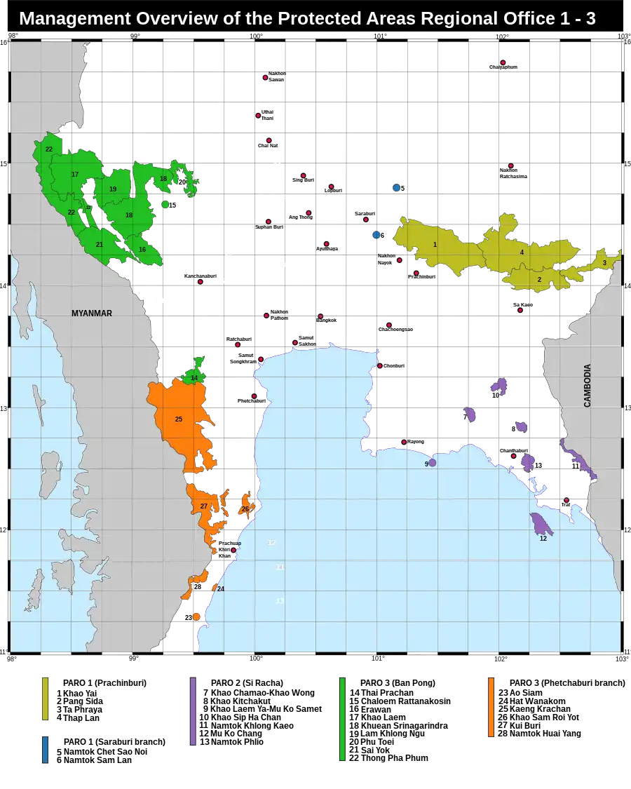 - PARO 3 (Phetcha Buri branch) with six national parks.