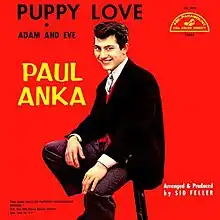 "Puppy Love" is a popular song written by Paul Anka in 1960 for Annette Funicello, a Mouseketeer, whom he had a crush on. Anka's version reached No. 2 on the Billboard Hot 100 behind Percy Faith's "Theme from A Summer Place",[1] No. 4 on the Canadian CHUM Charts,[2] and No. 33 on the UK Singles Chart.[3]