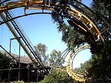 ![]() Python's double-corkscrew element (chain lift and first drop in background) | |