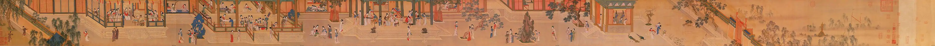 Qiu Ying's courtesy name was Shifu (实父), and his art name was Shizhou (十洲). He was born to a peasant family in Taicang. Moving with his family to Suzhou (蘇州), Qiu Ying was apprenticed as a lacquer artisan. Despite his family's humble origins, he had natural talent and skill in painting. He later learned the art of painting from the famous artist Zhou Chen[1] (周臣, ca. 1450–1535) and imitated ancient works of Tang (618-907) and Song (960-1279) dynasties, becoming so successful that his copies and the originals were indistinguishable.