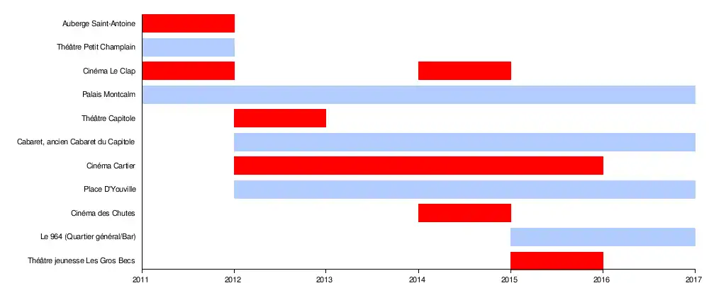 - ↑ "FCVQ en plein air - Festival de cinéma de la ville de québec". Festival de cinéma de la ville de québec (in Canadian French). Archived from the original on 13 August 2016. Retrieved 18 July 2017.