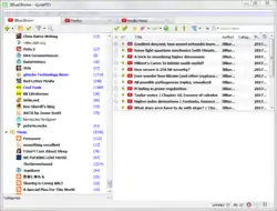 QuiteRSS is an open source cross-platform news aggregator for RSS and Atom news feeds.[4] QuiteRSS is free software released under the GPL-3.0-or-later license. It is available for Microsoft Windows, MacOS, Linux, and OS/2. It has two layout modesclassic and newspaper.[5] The classic layout has a three-panel view for the feed list, posts and browser.[6] It supports tabbed browsing, import/export of OPML feeds, basic web browsing functions, adblocking, tags and system tray integration.[7] It uses the WebKit browsing engine for its embedded browser[8][9]