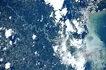 View of the river from the International Space Station. The coastal city in the right side of the photo is Mayagüez.