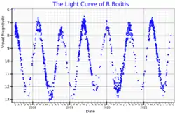 - 1 2 VSX (4 January 2010). "R Boötis". AAVSO Website. American Association of Variable Star Observers. Retrieved 26 June 2014.