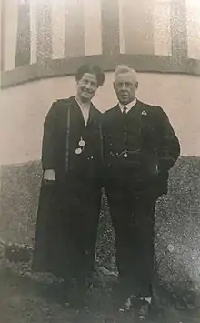 In April 1924 Don and Christina Henderson left from Wellington to sail to the U.S. and attend the Woman's Christian Temperance Union Jubilee convention.[41] They toured the various women's clubs and temperance social reform spots in San Francisco and Los Angeles for a month[42] and then travelled inland by train. They wrote letters back to the readers of the White Ribbon with great detail of their visits state and local leaders of the WCTU and other women's clubs in Salt Lake City, Denver, Omaha, Des Moines and Iowa City.[43] They reached Evanston, Illinois in July where they met with U.S. WCTU president Anna Adams Gordon.[44] From there, they took some time off to visit Dr. Mary Harris Armor at her home in Eastman, Georgia – Dr. Armor had toured New Zealand in 1922 to help with the WCTU NZ prohibition campaign. Henderson went on to England while Don attended three state WCTU Jubilee conventions, writing back to New Zealand of the decorations and food served at the banquets.[45] While she was in Washington D.C. she spoke briefly with U.S. President Calvin Coolidge about women's activism in New Zealand.[46] She finally sailed from New York in late December to spend two weeks in London for the World WCTU Jubilee Convention and touring the temperance sites she had not been able to see in her 1920 visit. From there she travelled to Aden, Mumbai (then called Bombay) and from there inland to the Pandita Ramabai Mukti Mission, a farm in the Pune district of India. A refuge for women, child widows and outcast children, the Mukti Mission had for many years been supported by the WCTU, and New Zealand women had been contributing to it from its beginning in 1889.[47] She got home to New Zealand in time to speak at the national WCTU NZ Convention in Dunedin in March 1925.[48]