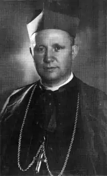 At the time when Pavelić was preparing to celebrate his name day on the feast of Saint Anthony of Padua on 13 June 1942, he was informed by the Pope's delegate Giuseppe Masucci, that if he would hold to this protest note, he would be automatically excommunicated in the accordance with the 2334 Code of Canon Law, and that this would obstruct the celebration of his name day. This persuaded Pavelić to give up any sanctions against Čule.[28] Few days after the protest note was issued,[29] Archbishop of Zagreb Aloysius Stepinac invited a high official in the Ministry of Justice and Religion together with Glavaš, and threatened them both with excommunication if they don't refrain from their actions.[30] Furthermore, the papal delegate Marcone, who was present there, excommunicated Glavaš. Glavaš refused to acknowledge the excommunication, claiming that he had no role in the creation nor spreading of the protest note against Čule's appointment.[29] However, in his statement to the OZNA authorities from 10 June 1945, Glavaš stated that he acknowledged the excommunication and left. Marcone later expressed a wish to see him again, however, Čule refused, staying "firmly in his stance that he has nothing to ask him for nor beg for".[31]