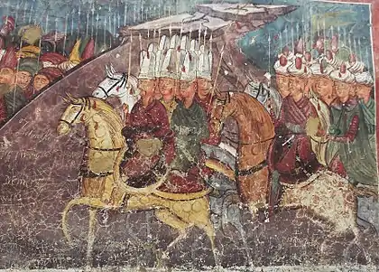 ![]() Radu Paisie as ktitor. David and Radoslav's fresco in the infirmary of Cozia Monastery | |