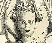 He married firstly Margaret Stafford (died 9 June 1396), the eldest daughter of Hugh Stafford, 2nd Earl of Stafford, by his wife Philippa Beauchamp, a daughter of Thomas Beauchamp, 11th Earl of Warwick (by his wife Katherine Mortimer, the daughter of Roger Mortimer, 1st Earl of March).[14] By Margaret Stafford he had two sons and six daughters:
