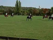 The sport of polo was relatively new to Western Europeans; in 1872, the Marquess of Torre Soto founded the "Jerez Polo Club" in Jerez de la Frontera while The Hurlingham Club published the official rules in 1873.[22][23][24] The Duke of Tamames, who had been educated in England, was also one of the main pioneers of polo in Spain.[21] Another important factor in the popularisation of the game was the great amount of business that British entrepreneurs were involved with in Spain, mainly transportation, sherry and mining i.e. Río Tinto, Osborne Group or González Byass. This common exposure to the British 'passe-temps' and colonies introduced in Spain not only polo but also golf and tennis.[25]