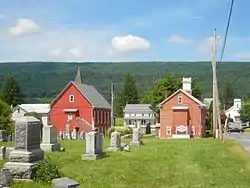 ![]() St. Peters Cemetery with St. Peters UCC Church (right) and St Peters Lutheran Church in the background | |