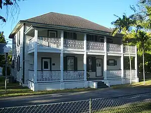 In 1912, the Pioneer Guild, a group founded by the women of Redland in 1907 to do good for social, religious, and civic purposes, constructed the Pioneer Guild Hall at the southwest corner of Redland Road and Bauer Drive, adjacent to a newly constructed Episcopal church and a general store called the Redland Grocery Store.[17] The building contained a stage and a dance floor and became the community's social center for dances, dinners, and teas.[17] It also served as a civic center where plans were discussed for better living conditions, and as a cultural center for lectures, art classes, and music classes.[18] Famed orator William Jennings Bryant gave a lecture on the "Origin of Man" at the Guild Hall.[18] Young people were brought in during the summer and taught etiquette as well as art, and the intersection at which the building stood became the de facto center of town.[17]