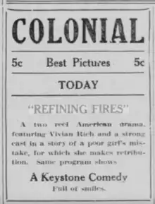 - ↑ "At the Colonial". No. 32. South Bend News-Times. 15 February 1915. Retrieved 13 April 2023.