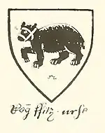Sir Reginald FitzUrse (1145–1173)[1] was one of the four knights who murdered Thomas Becket in 1170. His name is derived from Fitz, the Anglo-Norman French term meaning "son of" and urse meaning a bear, likely the nom de guerre of an ancestor. Although he lived before the true age of heraldry, which developed in the early 13th century, his shield bore the cognizance of a bear, which is visible in a contemporary drawing portraying the murder of Becket.