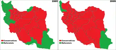 - ↑ Silver, Nate (2009-06-15). "Iranian Election Results by Province [UPDATED]".
