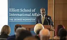 - ↑ "Ambassador Reuben E. Brigety II Named Elliott School Dean". GW Today. The George Washington University. Retrieved March 9, 2016.