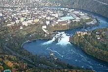 Towards its northern end, the Rheinfall Railway crosses the Rhine on a viaduct adjacent to the famous Rhine Falls, from which it takes its name.[2][3]