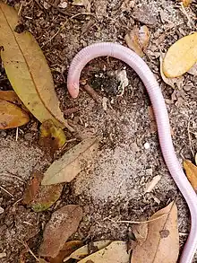 Rhineura floridana, known commonly as the Florida worm lizard,[4] graveyard snake,[5] or thunderworm, is a species of amphisbaenian in the family Rhineuridae. The species is the only extant member of the genus Rhineura,[6][7] and is found primarily in Florida but has been recorded in Lanier County, Georgia.[1] There are no subspecies that are recognized as being valid.[3][4]