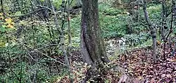 Richland Creek drains 8.27 square miles (21.4 km2) of area, receives about 45.3 in/year of precipitation, has a topographic wetness index of 440.36 and is about 20% forested.[4]
