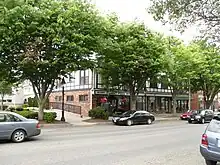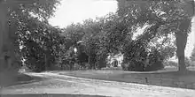 Ridgefield was first settled by English colonists from Norwalk in 1708, when a group of settlers purchased land from Chief Catoonah of the Ramapo tribe.[3] The town was incorporated under a royal charter from the Connecticut General Assembly issued in 1709.[2] Ridgefield was descriptively named.[4] The most notable 18th-century event was the Battle of Ridgefield on April 27, 1777. This American Revolutionary War skirmish involved a small colonial militia force (state militia and some Continental Army soldiers), led by, among others, General David Wooster, who died in the engagement, and Benedict Arnold,[5] whose horse was shot from under him.[3] They faced a larger British force that had landed at Westport and was returning from a raid on the colonial supply depot in Danbury. The battle was a tactical victory for the British but a strategic one for the Colonials because the British would never again conduct inland operations in Connecticut, despite western Connecticut's strategic importance in securing the Hudson River Valley.[2] Today, the dead from both sides are buried together in a small cemetery on Main Street on the right of the entrance to Casagmo condominiums: "...foes in arms, brothers in death...". The Keeler Tavern, a local inn and museum, features a British cannonball still lodged in the side of the building. There are many other landmarks from the Revolutionary War in the town, with most along Main Street.