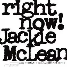 Right Now! is an album by American saxophonist Jackie McLean recorded in 1965 and released on the Blue Note label.[2] It features McLean in a quartet with pianist Larry Willis, bassist Bob Cranshaw and drummer Clifford Jarvis.
