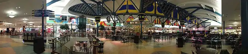 Food and beverage merchants are located in the mall. There is also a food court with a carousel in the center that is surrounded by 8 quick service restaurants.