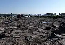 Ottawa River Stromatolite Bed, near the Champlain Bridge (Ottawa), with the Ottawa skyline in the background[238]