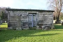 The family seat is Melville Castle between Dalkeith and Lasswade.[2] The first five viscounts (including Henry Dundas) are buried in a simple vault (gated but unlocked) in Old Lasswade Kirkyard. The 6th Viscount Melville, Charles Saunders Dundas, lies opposite his wife, Mary Hamilton Dundas, in the small north cemetery in Lasswade, adjacent to the old kirkyard. Their son, the 7th Viscount merely appears as a footnote on the monument.