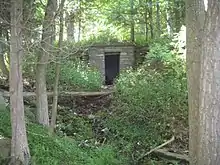 The property was purchased in 1947 by Rochester car dealer Thomas Nagle and Genesee Brewing Company owner Louis A. Wehle for use as a Hereford cattle ranch.[5] Louis Wehle's son, Robert G. Wehle, acquired the property in 1968. Robert G. Wehle was an avid conservationist, sculptor and breeder of English pointers, and founder of Elhew Kennels. Wehle used the property as a summer home and kennel.[6] Several of Wehle's pointer sculptures can be found in the park, as well as dog kennels, and a dog cemetery. Prior to his death in 2002, he arranged for the property to be sold to the New York State Office of Parks, Recreation and Historic Preservation, who purchased the parkland for $2.8 million. The park was opened to the public in 2004.[2][7]