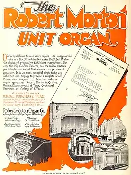 The company's heyday was in the late 1920s, the era of the lavish movie palace theaters exhibiting silent films. The rise of the Great Depression and the advent of sound films eliminated the demand for theater organs and the company closed in 1931. In addition to their uses in theaters and music halls, Robert Morton organs have been featured in the music for the Haunted Mansion attractions at various Disney theme parks.