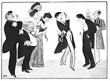 Montesquiou was a "notorious homosexual"[5] and "the most famous dandy" in Paris,[6] who was famed for his lifestyle during the Belle Époque.[7] His flamboyant homosexuality was certainly public knowledge by 1908, when he published a collection of poems and intimate letters dedicated to his deceased partner, Gabriel Yturri,[8] or 1909, when a book on the lives of the homosexual aesthetes of the fin de siècle was published,[9] though he may have been able to hide his sexuality behind the guise of only following the associated aesthetics.[10] Montesquiou likely contributed to Oscar Wilde's The Picture of Dorian Gray, and was a main basis of the homosexual character Baron de Charlus in good friend Marcel Proust's In Search of Lost Time – particularly its 1921 fourth part, Sodom and Gomorrah[7] – at which point he was effectively outed to the world.[11]