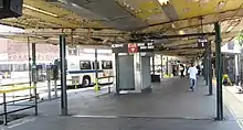 Boarding area for the B42 bus is to the left in 2008. The subway station platform is in the foreground, and the boarding area has since been reconstructed.