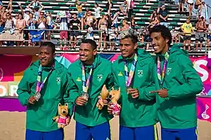 Club![]() Rodgrio (second from left) at the medals ceremony of the 2019 South American Beach Games.
