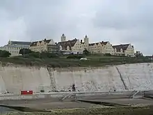 The East Brighton Golf Club in Roedean Road is a private club, founded in 1893 as the Kemp Town Golf Club.[6] Initially it had just a few holes alongside Roedean Road, but it was soon extended to nine holes across the Downs, and in 1897 changed its name to East Brighton with the addition of another nine holes. The small clubhouse was near the present fourth tee, but the present clubhouse was erected in 1897 and extended several times until 1912. The course itself is 6,291 yards long and was remodelled in 1903 along Wick Bottom; the land is leased from the corporation which acquired it in September 1913 as part of the East Brighton estate. Past presidents of the club include the Duke of Norfolk, Marquess of Abergavenny, Earl of Chichester and Earl Haig.[6] Unlike many Downland courses still has its roughs to scrub thickets and woodland and in winter short-eared owls often reside in the area.[5]