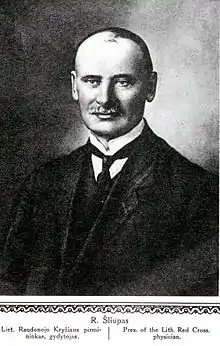 Rokas Šliūpas (2 June 1865 – 26 May 1959) was a Lithuanian physician, co-founder and chairman of the Lithuanian Red Cross from 1919 to 1932.