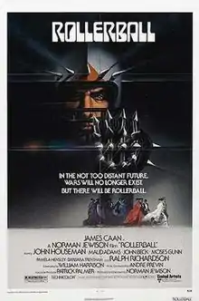 Rollerball is a 1975 dystopian science fiction sports film directed and produced by Norman Jewison.[7] It stars James Caan, John Houseman, Maud Adams, John Beck, Moses Gunn and Ralph Richardson. The screenplay, written by William Harrison,[8] adapted his own short story "Roller Ball Murder", which had first appeared in the September 1973 issue of Esquire.[9]