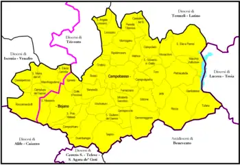 The Archdiocese of Campobasso-Boiano (Latin: Archidioecesis Campobassensis-Boianensis) is a Latin Church archdiocese of the Catholic Church in the commune of Campobasso, the capital of the province of Campobasso, in the region of Molise in Southern Italy. It became an archdiocese in 1973 and a metropolitan see in 1976.