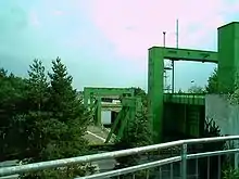 The overall height of the lift measured from the base of the underground float chambers to the upper cross beams is 97.21 metres. The water depth in the trough is usually 2.5 metres.