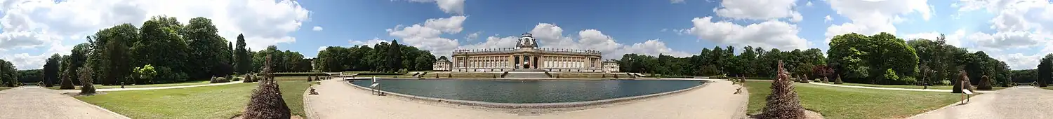 ![]() Frontal view of the Royal Museum for Central Africa's main building from the gardens | |