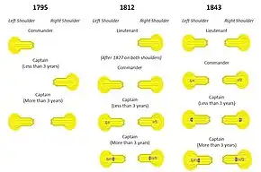 From 1795 rank badges could also be shown on epaulettes. The system changed several times, but after 1864 was as follows: