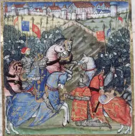The medieval standard was usually about eight feet long, but Tudor heralds determined different lengths, according to the rank of the nobility. "The Great Standard to be sette before the Kinges pavilion or tent – not to be borne in battle" – was 33-foot long. A duke's standard was 21-foot in length, and that of the humble knight, 12-foot long. These standards, or personal flags, were displayed by armigerous commanders in battle, but mustering and rallying functions were performed by livery flags; notably the standard which bore the liveries and badges familiar to the retainers and soldiers, of which their uniforms were composed.[3] The St. George in the hoist of each standard was the communal symbol of national identity. This badge or banner of England, at the head of the standard, was the indication that the men assembled beneath it were first, Englishmen, and secondly, the followers of the man whose arms were continued on the standard.[4]