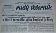 Rudý večerník ('Red Evening Newspaper') was a communist evening newspaper published from Prague, interbellum Czechoslovakia. As of 1938 the paper was estimated to have a circulation of 100,000.[1] It was the evening edition of the central party organ Rudé právo.[2][3] The newspaper was initially known as Rudé právo Večerník ('Red Justice - Evening'), the name Rudý večerník was adopted on 1 April 1928.[4] Ivan Olbracht served as editor-in-chief of Rudý večerník.[5]