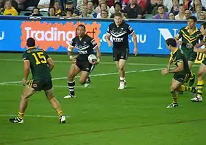 - ↑ "RUGBY LEAGUE LAWS OF THE GAME INTERNATIONAL LEVEL WITH NOTES ON THE LAWS AND NRL TELSTRA PREMIERSHIP INTERPRETATIONS" (PDF). PLAYNRL.COM. 2015. Archived from the original (PDF) on 4 March 2016.