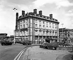 In 1895, a schism in Rugby football resulted in the formation of the Northern Rugby Football Union (NRFU).[13] The success of working class northern teams led to some compensating players who otherwise would be on their job and earning income on Saturdays. This led to the RFU reacting to enforce the amateur principle of the sport, preventing "broken time payments" to players who had taken time off work to play rugby. Northern teams typically had more working class players (coal miners, mill workers etc.) who could not afford to play without this compensation, in contrast to affluent southern teams who had other sources of income to sustain the amateur principle.[2] In 1895, a decree by the RFU banning the playing of rugby at grounds where entrance fees were charged led to twenty-two clubs (including Stockport, who negotiated by telephone) meeting at the George Hotel, Huddersfield on 29 August 1895 and forming the "Northern Rugby Football Union".[14] Within fifteen years of that first meeting in Huddersfield, more than 200 RFU clubs had left to join the rugby league.
