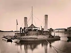 Novgorod (Russian: Новгород) was a monitor built for the Imperial Russian Navy in the 1870s. She was one of the most unusual warships ever constructed, and still survives in popular naval myth as one of the worst warships ever built. However, a more balanced assessment shows that she was relatively effective in her designed role as a coast-defence ship. The hull was circular to reduce draught while allowing the ship to carry much more armour and a heavier armament than other ships of the same size. Novgorod played a minor role in the Russo-Turkish War of 1877–78 and was reclassified as a coast-defence ironclad in 1892. The ship was decommissioned in 1903 and used as a storeship until she was sold for scrap in 1911.
