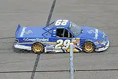Blaney returned to the Camping World Truck Series in 2013, driving the full schedule for Brad Keselowski Racing and competing for the series' Rookie of the Year award.[18] Blaney won his first career pole in the series at Kentucky Speedway in June,[19] then won his second career Truck Series race at Pocono Raceway in August.[20] Blaney also competed in the Nationwide Series at Iowa Speedway in June, substituting for Joey Logano after a rainout created a schedule conflict; Blaney finished ninth in the event.[21] Blaney competed in a second Nationwide Series race in 2013, at Kentucky Speedway on September 21, and led 96 of the race's 200 laps to win his first career race in the series, beating Austin Dillon and Matt Crafton.[22] Blaney was the only race winner in the 2013 Nationwide season to not have any Sprint Cup experience.[23]