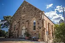 Early buildings were constructed of timber slabs and stringy bark, later wattle and daub became common. Plentiful sandstone in the area led to significant buildings being constructed of that material.[2]