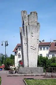 Sępólno was invaded by Nazi Germany on September 1, 1939,[3] the first day of World War II, and was later annexed and made the seat of Zempelburg district within the Reichsgau Danzig-West Prussia. During the German occupation, Poles were subject to persecutions, mass arrests, Germanisation, expulsions and massacres. Numerous Poles were imprisoned in a concentration camp in Radzim and in a prison established by the Selbstschutz in Sępólno, and later murdered on site or deported to other Nazi concentration camps.[6] Mass arrests of Poles were carried out from September 1939,[6] and the first executions of Polish inhabitants were carried out by the Germans at the turn of September and October 1939.[3] Mass executions of Poles in Sępólno were carried out in various places, for example on the railway tracks connecting Sępólno and Kamień Krajeński (in October 1939), at the primary school and at the shooting range (in November 1939),[6] local Poles were also murdered in Radzim, Karolewo, Rudzki Most.[3] Local Jews were also murdered in Radzim.[3] In early 1945, the town was captured by the Soviets, who plundered the town, sexual abused residents, deported Germans to Siberia, and fought the Polish underground resistance movement.[3] Afterwards the town was restored to Poland.