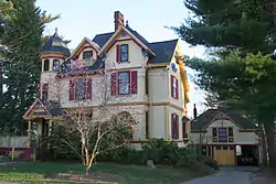 The S. Curtis Smith House is a historic house at 56 Fairmont Avenue in Newton, Massachusetts. The 2+1⁄2-story wood-frame house was built c. 1883, and is one of Newton's finest Queen Anne Victorian houses. It exhibits a full range of that style's features, including asymmetrical massing with numerous and varied gables, a tower with an octagonal arched roof, bands of different types of shingling, and an ornately decorated front portico. The house was built for S. Curtis Smith, a schoolteacher.[2]