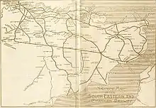 The South Eastern and Chatham Railway Companies Joint Management Committee (SE&CRCJMC),[2] known as the South Eastern and Chatham Railway (SE&CR), was a working union of two neighbouring rival railways, the South Eastern Railway (SER) and London, Chatham and Dover Railway (LC&DR), which operated between London and south-east England. Between 1899 and 1923, the SE&CR had a monopoly of railway services in Kent and to the main Channel ports for ferries to France and Belgium.
